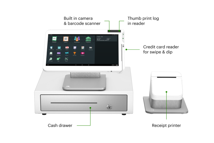 Receipts: Built-in thermal dot printer and can email or text digital receipt